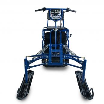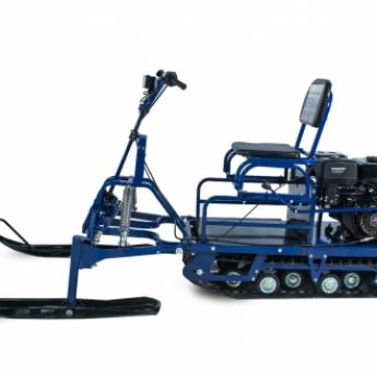 При установке лыжного модуля от компании Снегоход-Сервис в комплекте с коробкой реверса потребитель получает аналог разборного снегохода, который легко преодолевает любые препятствия и способен развивать скорость до 45 км/ч.