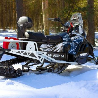 SF200SL имеет современный дизайн и компоновку. Элементы конструкции спроектированы таким образом, что бы обеспечить комфортное передвижение по любому снежному покрытию. Подогрев ручек и курка газа, USB-розетка, панель приборов со всей необходимой информацией, электрозапуск двигателя и ручной запуск. Широкие и длинные подножки, закапотированный двигатель, двухместное сиденье, спинка для пассажира, позволяют удобно расположиться водителю и пассажиру на снегоходе. Проверенный годами эксплуатации, двигатель 180 куб.см, через клиноременный вариатор разгоняет снегоход свыше 50 км в час. Независимая передняя подвеска позволяет легко маневрировать и держать уверенно курс. В наличие задний ход.На снегоходе установленная удлиненная гусеница 3434 мм, специально созданная российским заводом «Композит». Гусеничный блок с обрезиненными катками и алюминиевыми закаленными склизами. Задняя подвеска с регулируемым ходом и жесткостью. Рама и тоннель гусеничного блока изготовлен из стали 1.5 мм с усиливающими накладками в местах наибольших нагрузок