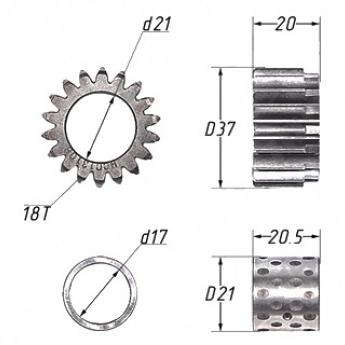Шестерня сцепления (с втулкой) 139FMB,147FMH,152FMI,153FMI; DELTA, ALPHA 18T (h=20мм)